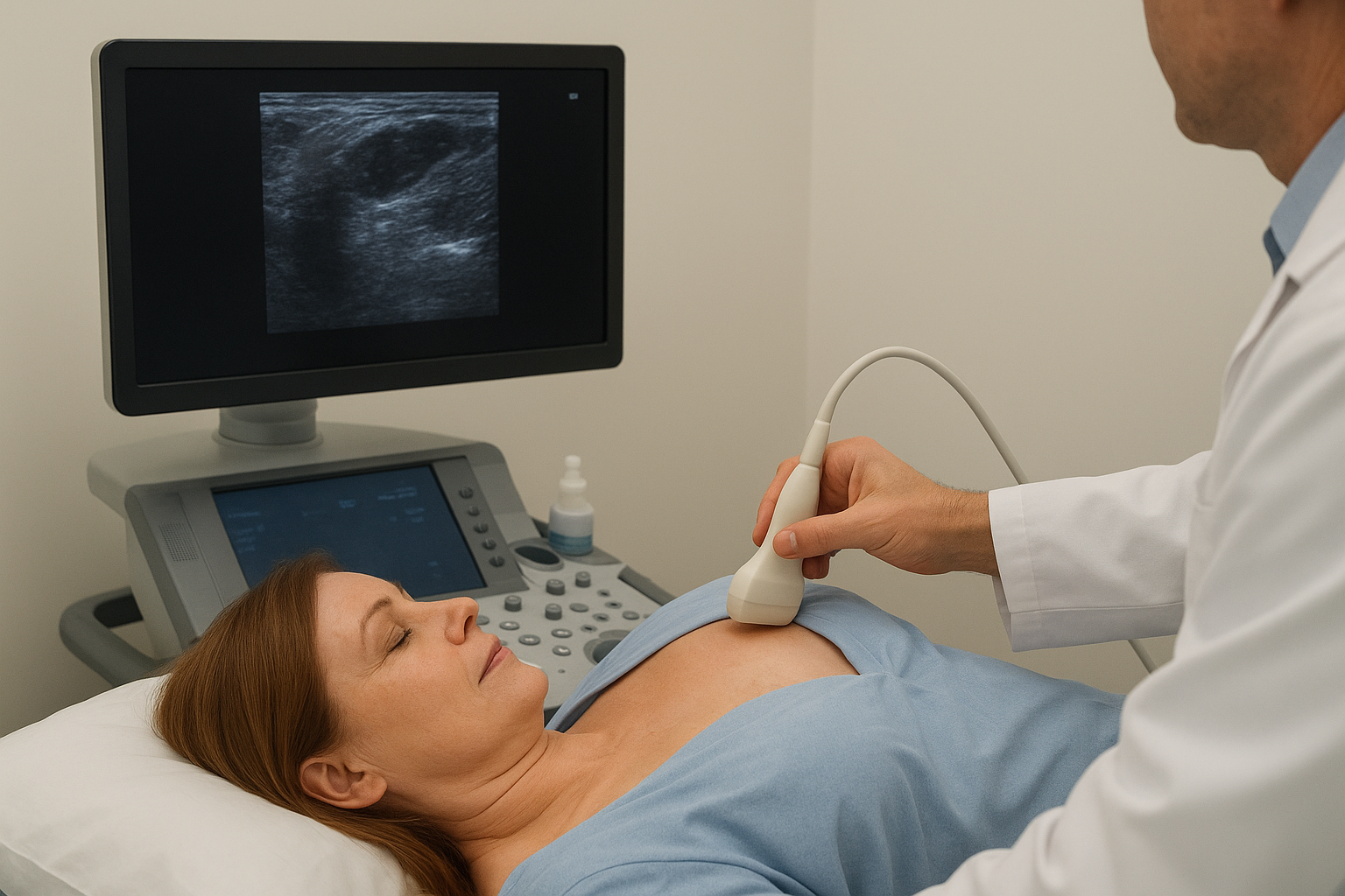 고주파 초음파를 이용하여 유방 내부 조직의 이상 여부를 확인하는 검사입니다.